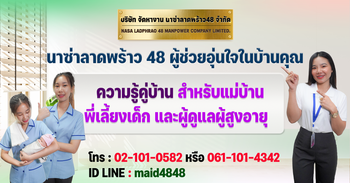 จะดีกว่าไหมถ้า คุณสามารถหาแม่บ้าน ที่โดนใจคุณได้ครบทุกความต้องการ ด้วยบริการจัดหาแม่บ้านจากเรา บริษัทนาซ่าลาดพร้าว48 ที่จะช่วยเปลี่ยนเรื่องหาแม่บ้านยากๆ เป็นเรื่องๆง่ายในทันที ด้วยบริการรับจัดหาแม่บ้าน มืออาชีพ แบบครบวงจร คุณจะมั่นใจได้ว่า แม่บ้านของเรานั้น ทำงานเป็นทุกอย่าง เพราะแม่บ้านของเรา ผ่านการอบรม และมีประสบการณ์การทำงาน ทุกคน ทำให้ช่วยแบ่งเบาภาระดูแลบ้าน หรือบริษัทของคุณได้แน่นอน